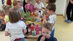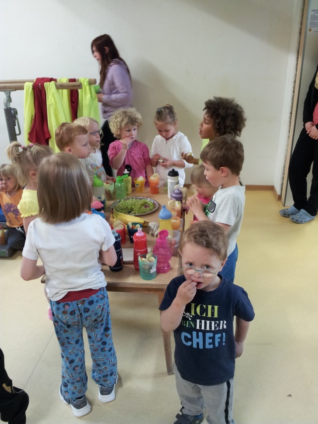 Die Kinder brachten sich Sprudel mit und in den Pausen aßen sie mit Freude das Gemüse und Obst.