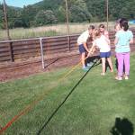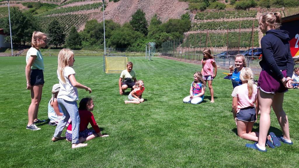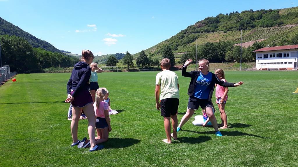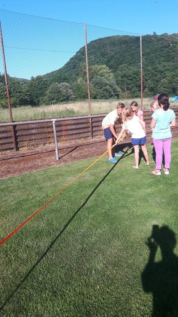 Nach dem Mittagessen ging es zu einer Schnitzeljagd rund um Niederhausen. Zurück im Seeloch war die Rasensprenganlage eine willkommene Abwechslung. Auch die aufgebaute Slakline machte Spaß und wurde zur Herausforderung. Mit selbstgemachten Hamburgern, Musik und guter Laune ging es in die Nacht.