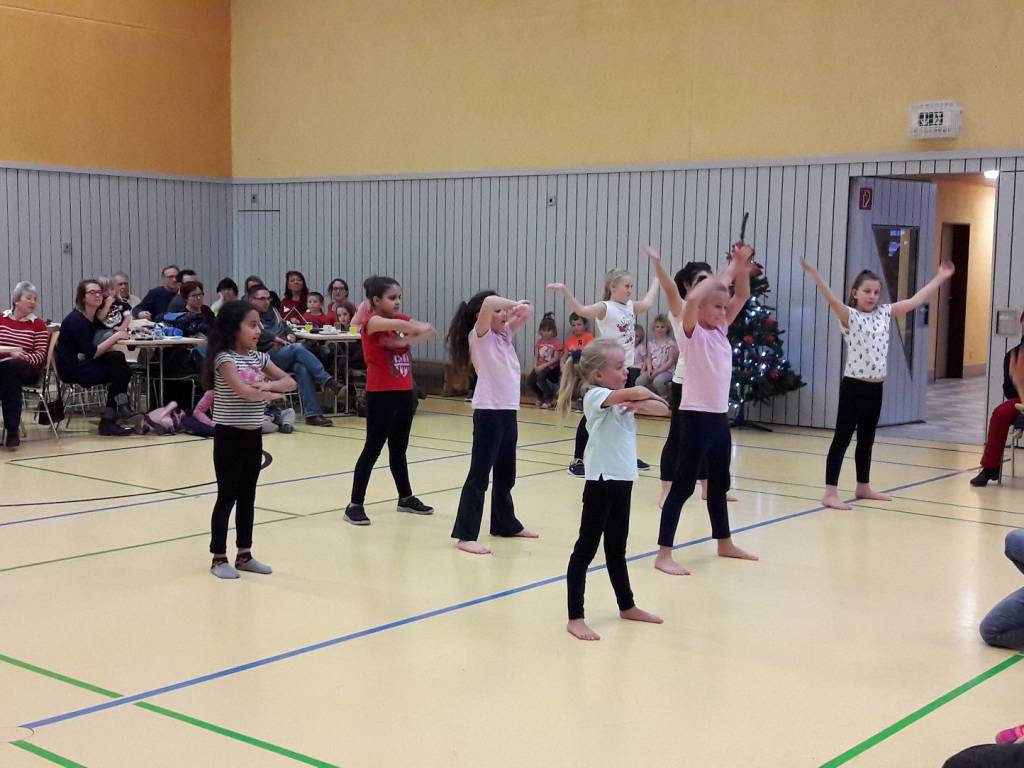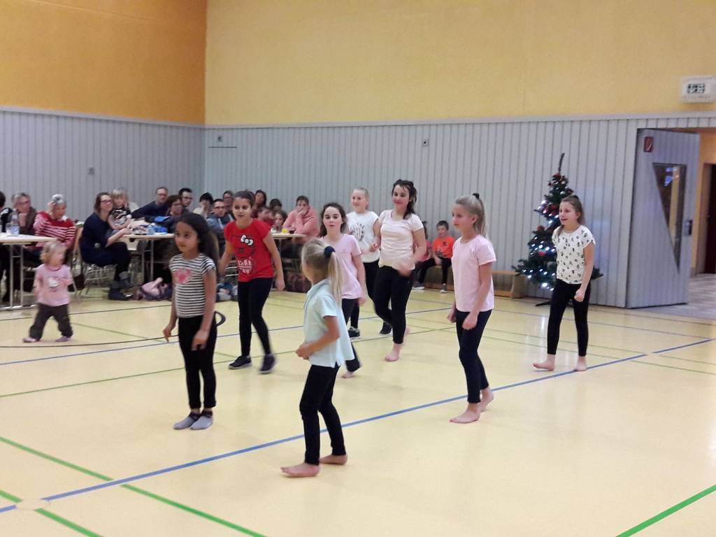 Die Kinder der verschiedenen Gruppen zeigten mit Begeisterung ihr Können. Die Kleinsten präsentierten verschiedene Übungen zur Verbesserung der Motorik und des Gleichgewichtssinnes und wie man den kindlichen Bewegungsdrang mit einem gespenstisch guten Tanz bewältigen kann. Die Größeren wagten sich an Vorführungen am Reck. Die Mädchen der Tanzgruppe erfreuten das Publikum mit einem hippen Tanz, der alle zum Mitklatschen bewegte. Die Damen der Montags-Gymnastikgruppe stellten ihre Gruppe mit aeroben Aufwärmübungen und Übungen mit dem Thera-Band® vor. Zum Schluss wurden alle Anwesenden zum gemeinsamen „Free Style“ tanzen eingeladen.