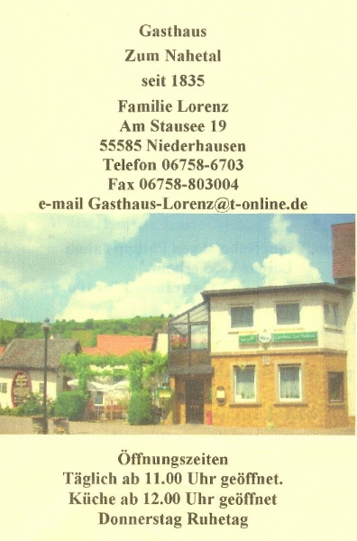 Hier in der seit 1835 im Familienbesitz befindlichen Gaststätte begrüßt man sie gerne mit einer großen Auswahl an Speisen und Weinen aus der Region. Unsere 2 Gasträume sind stufenfrei und werden auch gerne zu Familienfeiern aller Art genutzt. Ein Gartenlokal im Sommer rundet unser Angebot ab.
