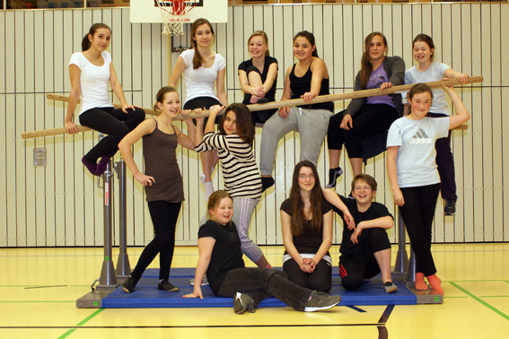 Zurzeit trainieren achtzehn Mädchen ab der 5. Klasse montags von 18.30 – 19.45 Uhr in der Stauseehalle in Niederhausen. Der Trainingsbesuch ist sehr gut und die Motivation zum Trainieren ebenfalls. Das haben die Mädchen in den selbst erarbeiteten Vorführungen an der letzten Nikolausfeier demonstrieren können. Ab März üben wir bereits auf dem Fahrradweg den 800-m-Lauf für das Sportabzeichen. In den folgenden Monaten verlagern wir das Training von der Halle auf den Sportplatz, um für Sprint, Wurf und Sprung zu trainieren. Wir besuchen auch das Bad Kreuznacher Freibad, um dort das Abzeichen im Schwimmen zu erlangen, das jede Teilnehmerin bisher erreicht hat. Wir trainieren an allen Geräten, machen Spiele zum Aufwärmen oder als kleinen Abschluss einer Übungsstunde. Das Mitgestalten und eigenständige Üben oder auch die Hilfestellung unter Anleitung ist mir sehr wichtig.